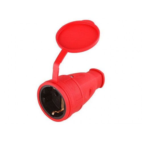 Розетка 1-ая переносная (с/з, 16А, 250В, брызг. защ.) каучук, красная Юпитер