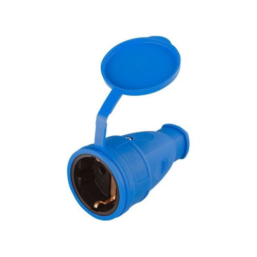 Розетка 1-ая переносная (с/з, 16А,с 250В, брызг. защ.) каучук, синяя Юпитер