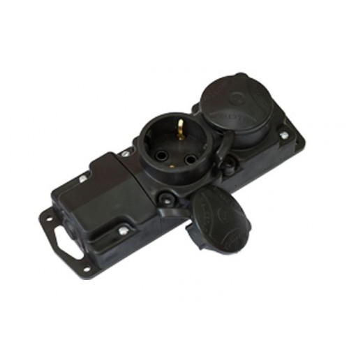 Розетка 2-ая переносная (с/з, 16А, 250В, з/ш, брызг. защ.) черная, BYLECTRICA