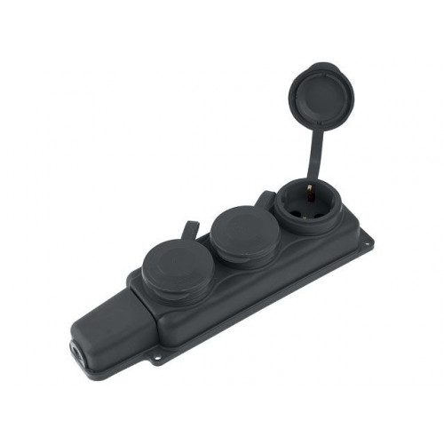 Розетка 3-ая переносная (с/з, 16А, 250В, брызг. защ.) каучук, черная, Юпитер