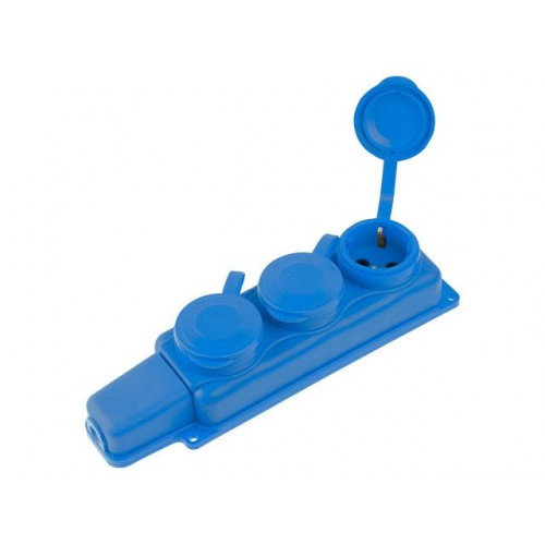Розетка 3-ая переносная (с/з, 16А, 250В, брызг. защ.) каучук, синяя Юпитер