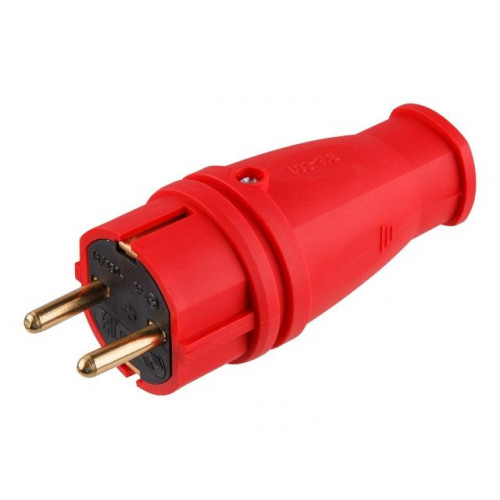 Вилка (с/з, 16А, 250В) каучук, красная Юпитер