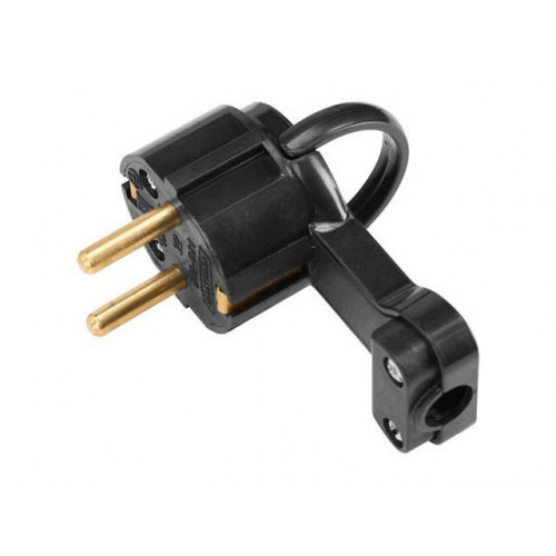 Вилка угловая с откидывающимся ушком (с/з, 16А, 250В) черная, Bylectrica