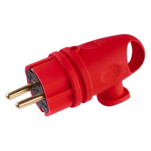 Вилка угловая с ушком (с/з, 16А, 250В) каучук, красная Юпитер
