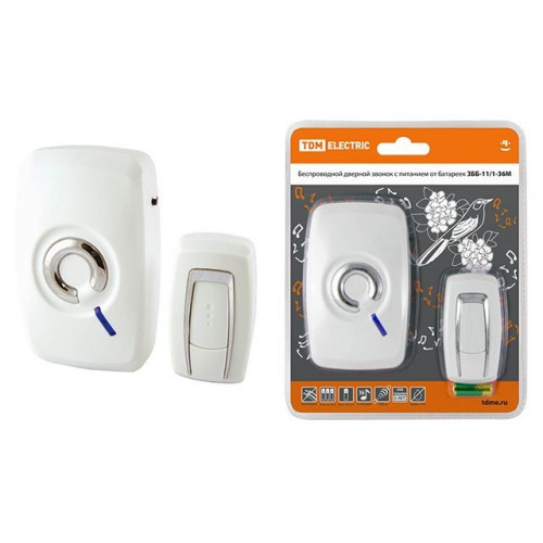 Звонок беспроводной на батарейках ЗББ-11/1-36М (36 мелодий, кнопка IP30, 3х1,5В АА) TDM
