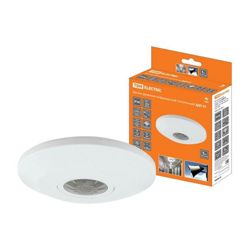 Датчик движения потолочный ДДП-05 2000Вт, 10-900с, 6м , 3+Лк, 120(сбоку)+360(сверху)гр IP20, TDM