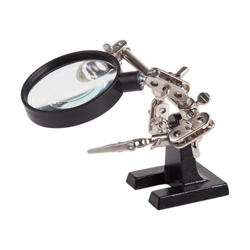 Держатель <третья рука> с лупой х2.5 REXANT служит, главным образом, при проведении паяльно-сборочных работ в электронике, ювелирном деле, сборке и ремонте для зажима мелких деталей в любом нужном положении, когда не хватает двух рук.