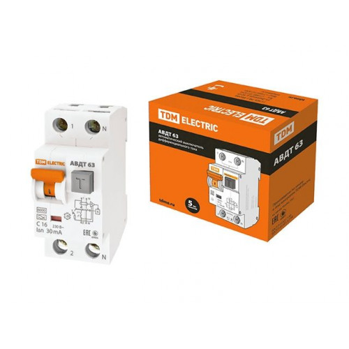 Выключатель дифференциальный автоматич. АВДТ-63/2Р C16 30мА тип А TDM