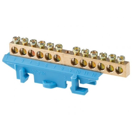 Шина "N" нулевая 6х9мм 12 групп c изолятором на DIN-рейку бол. стойка Юпитер