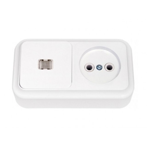 Блок выкл. 1 клав. + розетка (открытая, с/з) со световой индикацией, белая, Пралеска, BYLECTRICA