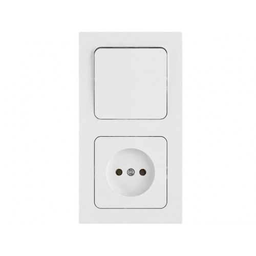 Блок выкл. 1 клав. + розетка (скрытая, б/з) белая, Astrum, BYLECTRICA