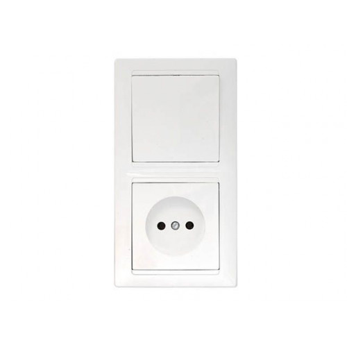 Блок выкл. 1 клав. + розетка (скрытая, б/з) белая, Стиль, Bylectrica