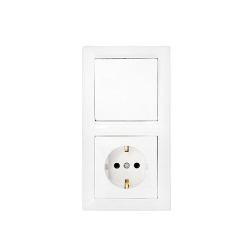 Блок выкл. 1 клав. + розетка (скрытая, с/з) белая, Стиль, Bylectrica
