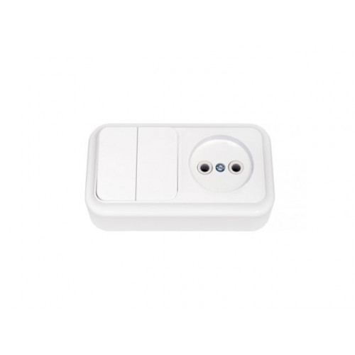 Блок выкл. 2 клав. + розетка (открытая, б/з) белая, Пралеска, Bylectrica