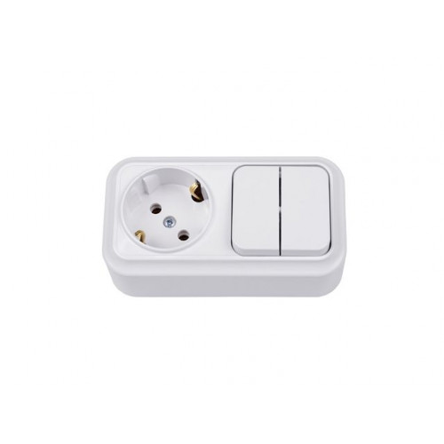 Блок выкл. 2 клав. + розетка (открытая, с/з) белая, Вариант, Bylectrica
