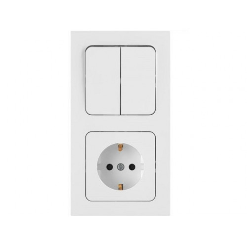 Блок выкл. 2 клав. + розетка (скрытая, с/з) белая, Astrum, BYLECTRICA