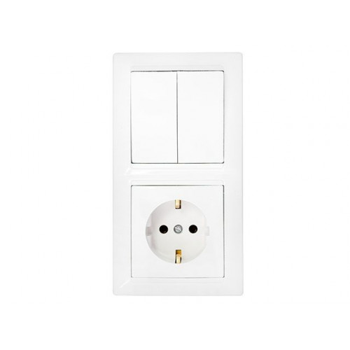 Блок выкл. 2 клав. + розетка (скрытая, с/з) белая, Стиль, Bylectrica