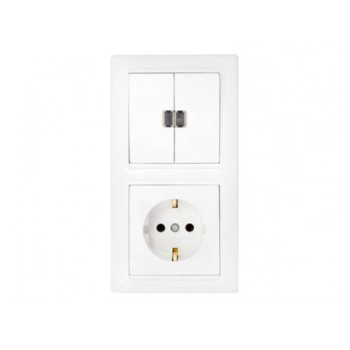 Блок выкл. 2 клав. + розетка (скрытая, с/з) со световой индикацией,белая, Стиль, BYLECTRICA
