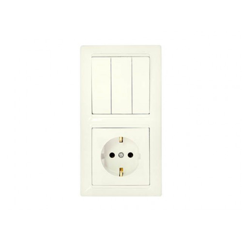 Блок выкл. 3 клав. + розетка (скрытая, с/з) бежевый, Стиль, BYLECTRICA