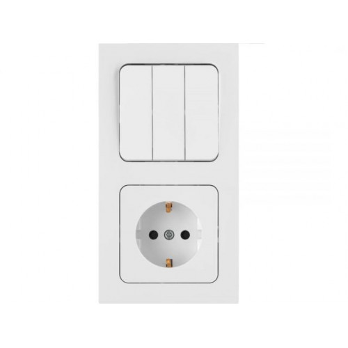 Блок выкл. 3 клав. + розетка (скрытая, с/з) белая, Astrum, BYLECTRICA