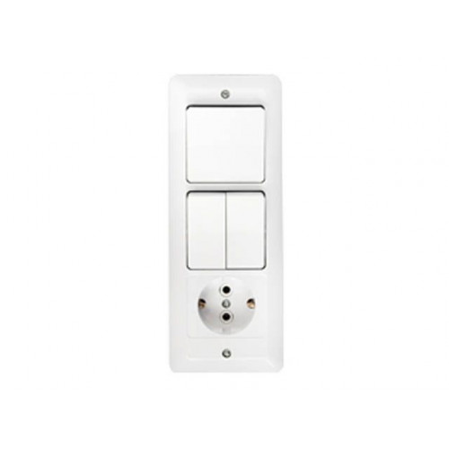 Блок выкл. 3 клав. + розетка (скрытая, с/з) белая, Паритет, BYLECTRICA
