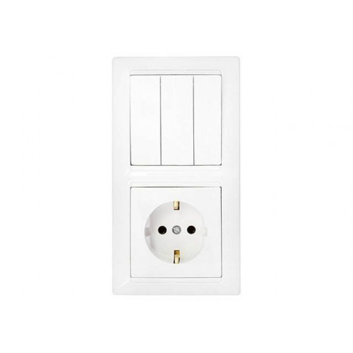 Блок выкл. 3 клав. + розетка (скрытая, с/з) белая, Стиль, Bylectrica