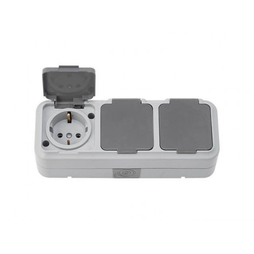 • Розетка 3-ая (открытая, с/з, брызг. защ.) серая, Пралеска Аква, Bylectrica