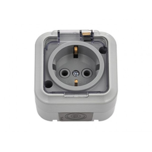 Розетка 1-ая (открытая, с/з, брызг. защ.) серая, Пралеска Аква, Bylectrica
