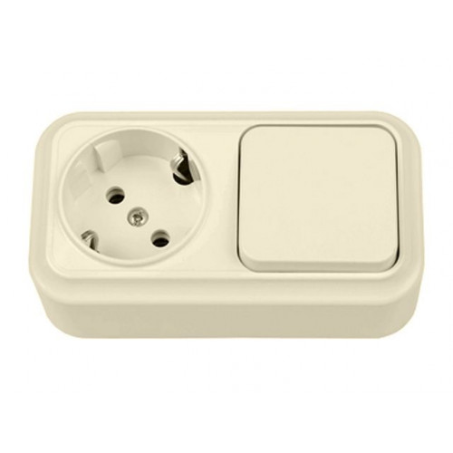 Блок выкл. 1 клав. + розетка (открытая, с/з) бежеваяя, Вариант, BYLECTRICA