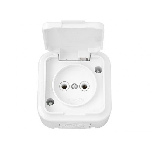 Розетка 1-ая (открытая, б/з, брызг. защ.) белая, Пралеска Аква, Bylectrica