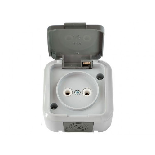 • Розетка 1-ая (открытая, б/з, брызг. защ.) серая, Пралеска Аква, Bylectrica