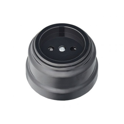 Розетка 1-ая (открытая, б/з, з/ш) черная, Ретро, BYLECTRICA