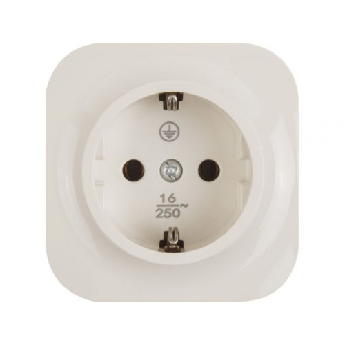 Розетка 1-ая (открытая, с/з) бежевая, Bailly, LEIDEN ELECTRIC