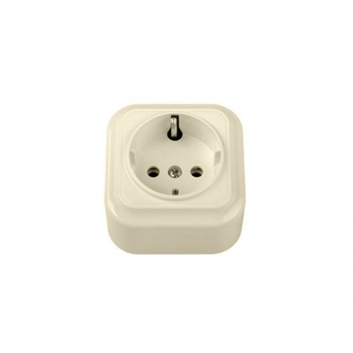 Розетка 1-ая (открытая, с/з) бежевая, Вариант, BYLECTRICA