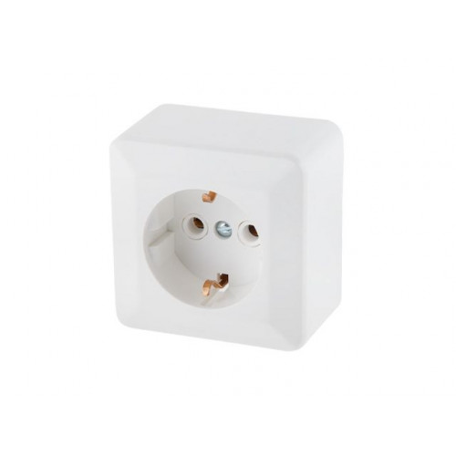 Розетка 1-ая (открытая, с/з) белая, Эконом, Юпитер