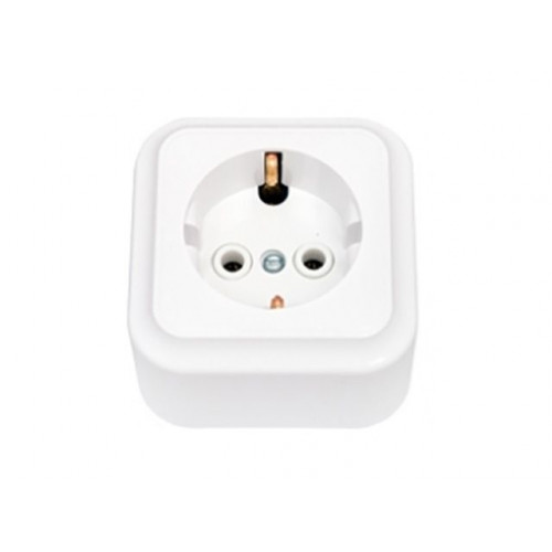 Розетка 1-ая (открытая, с/з) белая, Пралеска, Bylectrica