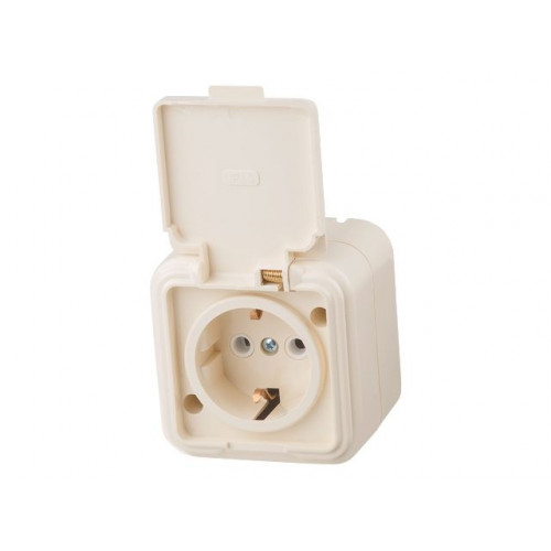 Розетка 1-ая (открытая, с/з, брызг. защ.) бежевая, Стандарт, Юпитер