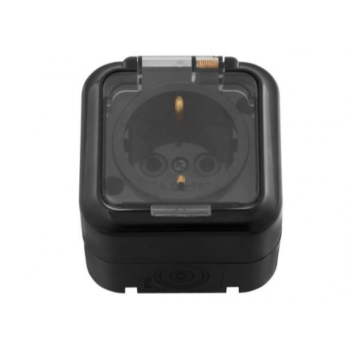 Розетка 1-ая (открытая, с/з, брызг. защ.) черная, Пралеска Аква, Bylectrica