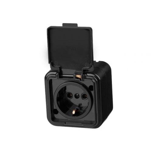 Розетка 1-ая (открытая, с/з, брызг. защ.) черная, Стандарт, Юпитер