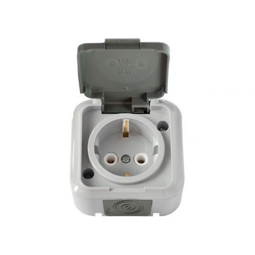 Розетка 1-ая (открытая, с/з, брызг. защ.) серая, Пралеска Аква, Bylectrica