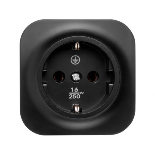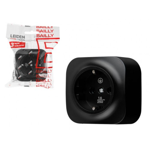 Розетка 1-ая (открытая, с/з) черная, Bailly, LEIDEN ELECTRIC