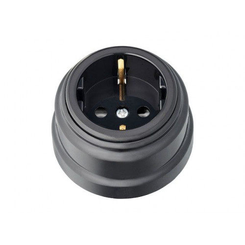 Розетка 1-ая (открытая, с/з) черная, Ретро, BYLECTRICA