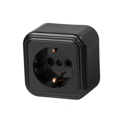 Розетка 1-ая (открытая, с/з) черная, Стандарт, Юпитер