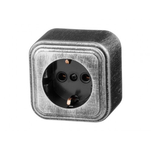 Розетка 1-ая (открытая, с/з) серебро, Стандарт, Юпитер