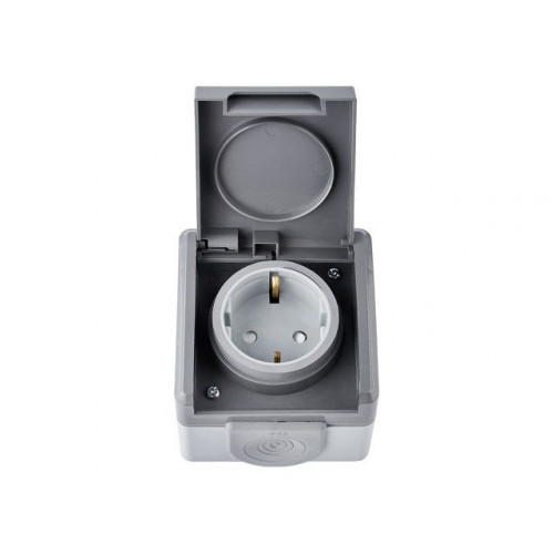 Розетка 1-ая (открытая, с/з, струезащ.) серая, Пралеска Аква, Bylectrica