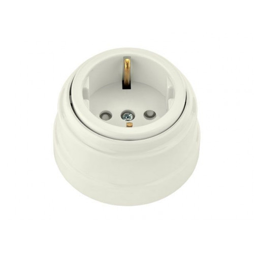 Розетка 1-ая (открытая, с/з, з/ш) бежевая, Ретро, BYLECTRICA