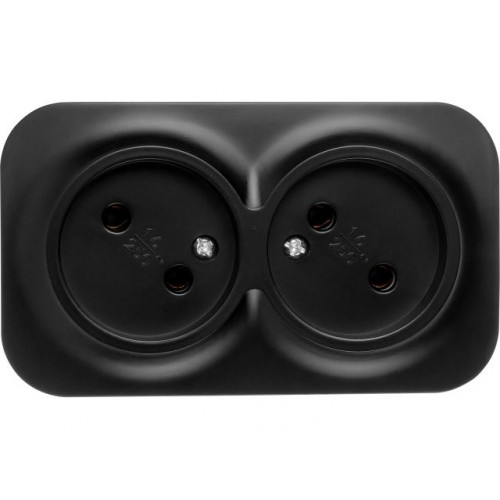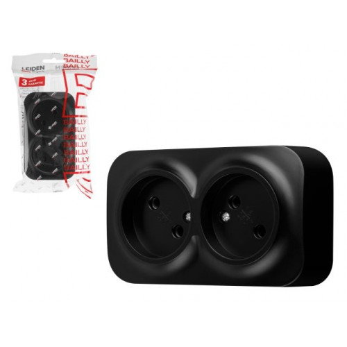 Розетка 2-ая (открытая, б/з) черная, Bailly, LEIDEN ELECTRIC
