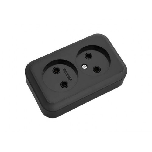 Розетка 2-ая (открытая, б/з) черная, Пралеска, Bylectrica