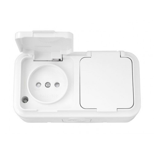 Розетка 2-ая (открытая, б/з, з/ш, брызг. защ.) белая, Пралеска Аква, BYLECTRICA