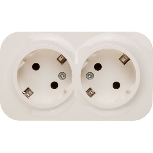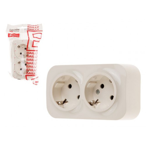 Розетка 2-ая (открытая, с/з) бежевая, Bailly, LEIDEN ELECTRIC